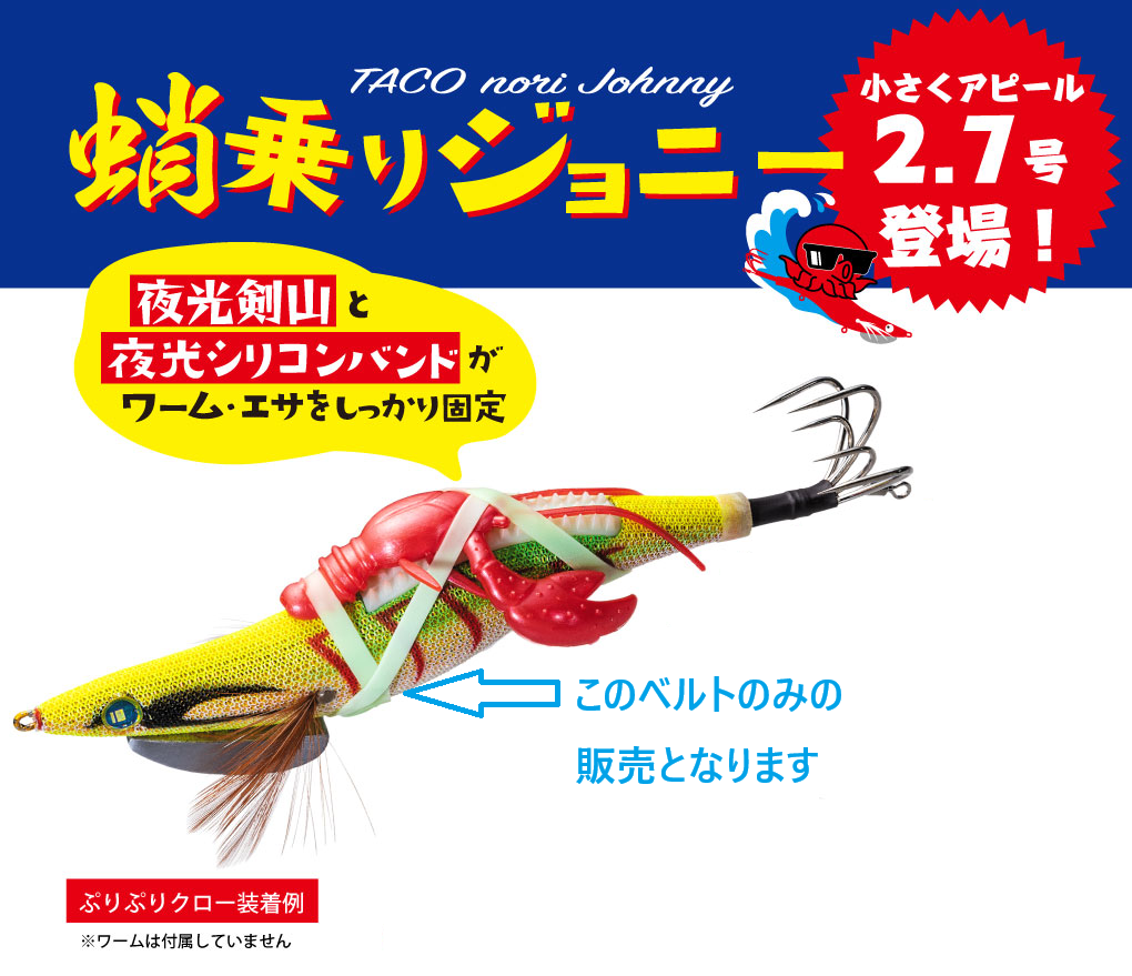 蛸乗りジョニーの背中にある「夜光剣山」とのコンビがエサやワームをしっかりと固定し、怪しい光がタコを引き寄せます。